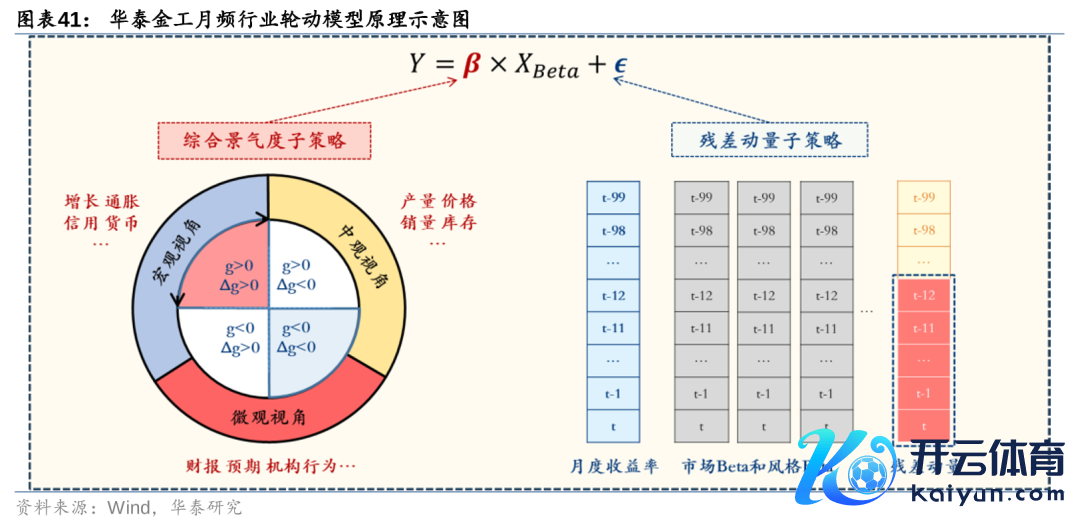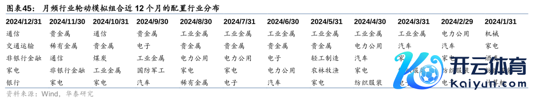 华泰金工月频行业轮动模子包括轮廓景气度和残差动量两个部分。轮廓景气度模子从宏不雅、中不雅、微不雅三个视角捕捉行业盈利才能g和盈利才能旯旮变化Δg王人大于零的契机,主要目的在于预测阛阓和作风Beta变化,具体细节可参考前期酬报《行业景气投资的顶层经营和落地决策》(2023-09-14)。残差动量模子主要通过工夫分析的门径捕捉行业专属信息的异动,残差部分是无法被阛阓和作风Beta所评释的部分,可能蕴含着如工夫当先、战略支握等行业专属信息,具体细节可参考前期酬报《行业残差动量订价才能初探》(2024-02-05)。咱们将轮廓景气度和残差动量1:1交融得到月频行业轮动模子的最终调仓信号(其中轮廓景气度模子里面宏不雅、中不雅、微不雅三个视角的权重为2:5:3)。限定2024-12-31,轮廓得分最高的5个行业是通讯、走运、非银、家电、银行。