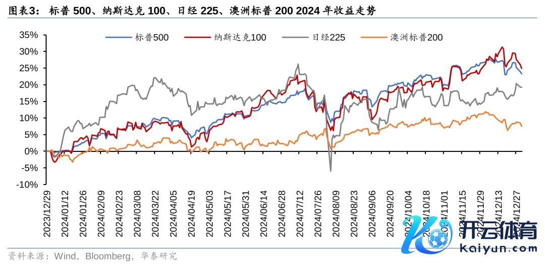 好意思国股市在AI飞扬的领导下全年趋势上行,其主要回撤发生在7月底至8月初,触发因素是日本加息激勉日元套拒却易反向,国外股市、外汇等主要钞票均受此影响出现回撤。日经225出现回撤之后全年未能再编削高,全年后三个季度举座走势接近横盘颠簸。