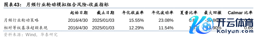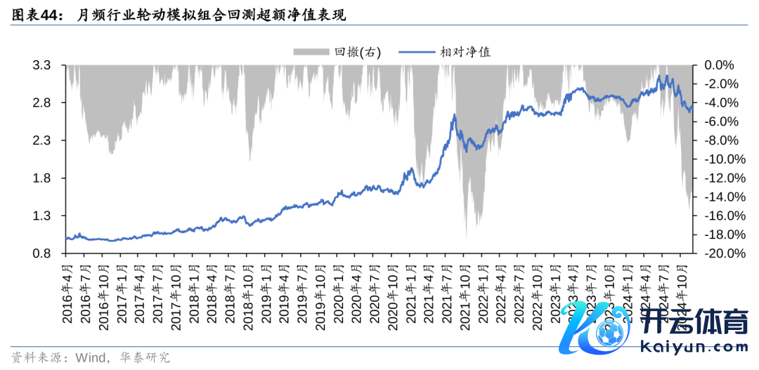 咱们字据月频行业轮动模子的轮廓打分构建模拟组合,每个月中式得分前五的行业进行等权配置。模拟组合的回测区间为2016-04-30~2025-01-03,区间内年化收益率15.55%,相平等权基准组合的逾额年化收益率为12.29%。从逾额收益净值弧线上看,模子在2021年9月至2022年2月间出现一定幅度的回撤,后续在2023年一季度得到设立,24年10月以来策略再次出现回撤。近三年阛阓干线强度不高可能是该模子线路不相识的原因之一,总体来说,模子逻辑了了、永恒收益或能够驯顺等权基准,对投资者一经有一定参考意旨的。对该模子更多的探讨和编削不错参考酬报《双主见遗传计较运用于行业轮动》(2024-5-20)。