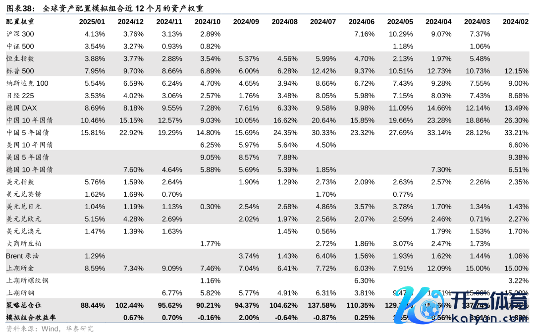 字据周期模子和动量模子的预测完了,继承“动量选钞票,周期调权重”的风险预算框架,构建人人钞票配置模拟组合。模拟组合的回测区间为2010-06-01~2025-01-02,区间内年化收益率7.74%,夏普比率1.60。历史回测中,大类钞票配置比例相对比较溜达,呈现风险钞票和避险钞票轮动配置特征。最近1个月组合权重较为溜达,握仓相对较高的有中国5年国债、中国10年国债、上期所黄金、德国DAX、标普500等。与上月比拟,外汇握仓有所上升。
