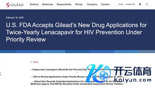 (东谈主民日报健康客户端记者 刘诗霞 谢菲)2月18日,据好意思国祥瑞德科学公司官网音讯,好意思国食物药品监督治理局(FDA)已经受其提交的来那帕韦(lenacapavir)新药央求,用于HIV感染的败露前驻扎,同期授予该央求优先审评阅历。